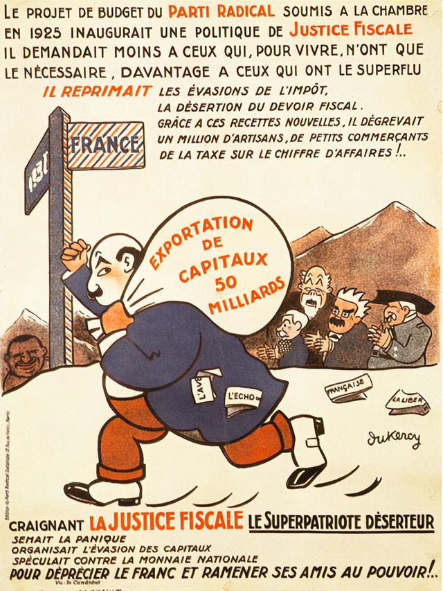 1925年谴责左派政府领导下资本外逃行为的漫画 / Wikipedia