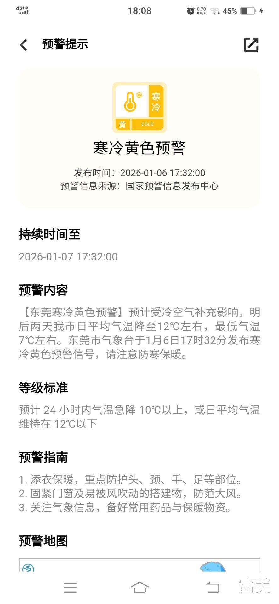 东莞天气寒冷预警明后两天降12℃左右。注意添衣保暖!
