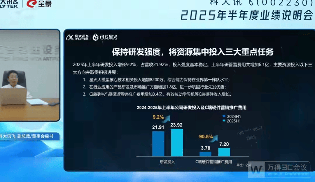 其一,C端业务增长快、回款好,算得上是未来现金流“水泵”,但为了持续赢得市场竞争,需要不断进行渠道建设与品牌投放,拉高费用率,利润兑现滞后(财报显示,讯飞2025H1销费支出同比增加28%,C端渠道投放则增加90.5%)。