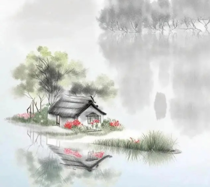 深处小湖亭两望,