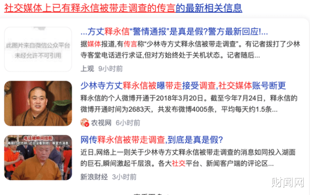 7月26日,社交媒体上已有释永信被带走调查的传言,其个人微博自7月24日早6时58分发布最后一条动态后突然停更。