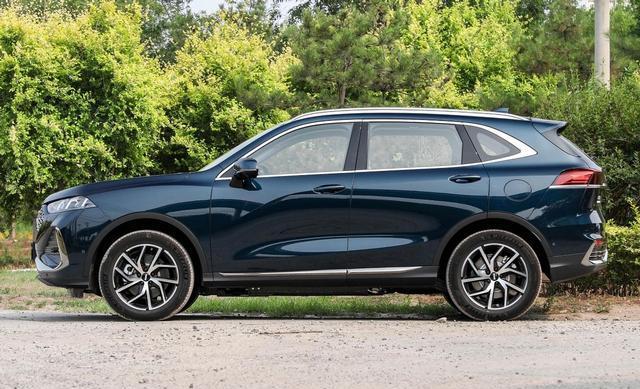 车侧线条规整,秉承传统SUV风格。全系轮毂19英寸,适配拿铁DHT PHEV体型。车尾层次感强,镀铬饰条贯穿尾灯,保险杠饰以银色条带。