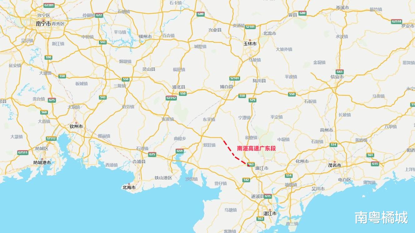 南湛高速是两广交通一体化布局中的关键线路之一,路线总长约217公里,采用双向四车道高速公路标准建设,设计时速120公里,串联起广西南宁与广东湛江两大区域中心城市。线路整体呈西北—东南走向,始于广西南宁市邕宁区蒲庙镇,途经钦州灵山、浦北,玉林博白等县区,终至广东湛江市廉江市石岭镇,向东接入玉湛高速,形成“南宁—玉林—湛江”的快速交通走廊,是广西高速公路网“1环12横13纵25联”中的“联13”线,也是广东连通广西的11条出省通道之一。