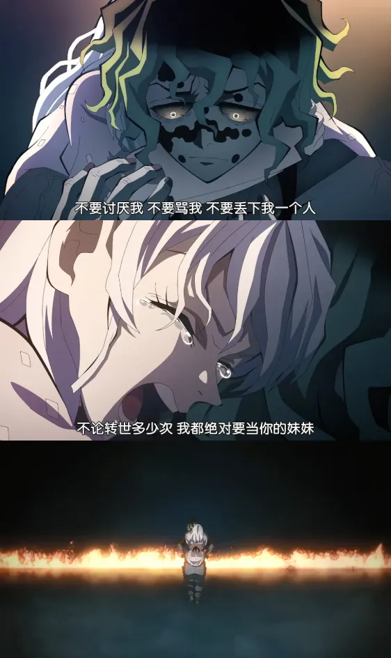 看了就会发现,关于猗窝座的故事,就是最经典的《鬼灭》叙事模版,在激烈地打斗之后,主角的一言一行触及了对手内心,鬼在临死前回望了自己的一生。