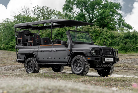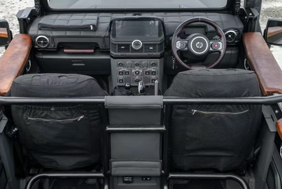 外观方面,新车依旧保留了英力士掷弹兵车型方正硬朗的造型,圆形的头灯和简约平直的车身线条,营造出复古时尚的视觉效果。亮点部分在于其采用了无漆面、无门柱、无车窗、无车顶设计,车内乘员直接暴露在外界环境内。值得注意的是,为保证实用性,新车还是提供了前挡风玻璃、遮阳棚。