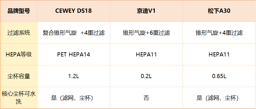 通过对比三款产品的官方过滤系统结构(如HEPA等级、气旋技术)和尘杯设计(容量、可水洗部件),一是过滤系统,它决定了排出的空气是否洁净,是否影响空气质量,关乎家人健康;二是后期维护,主要对比尘杯容量和核心部件的可清洗性,这直接影响使用的便利度和长期成本。