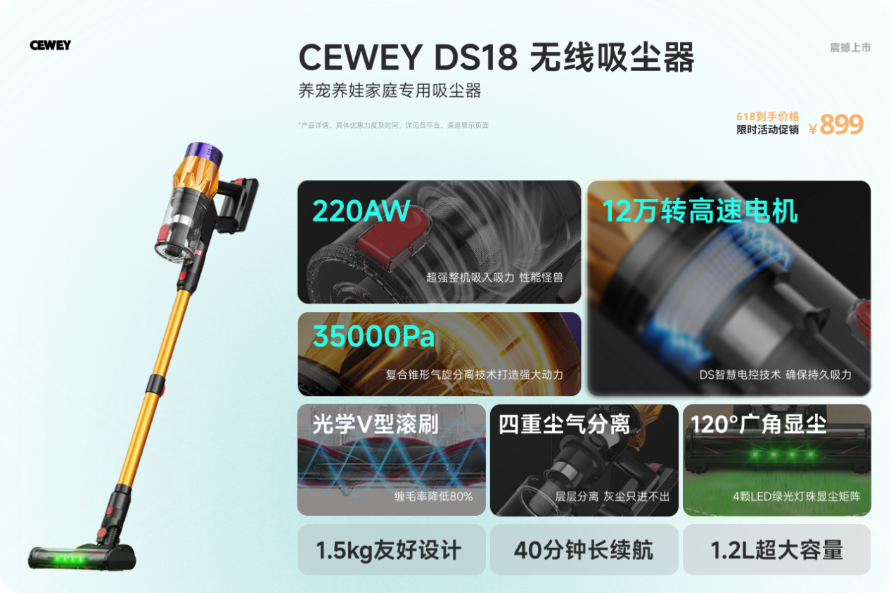 推荐理由:在吸尘器行业中,由于内卷严重,普遍存在性能虚标、吸力衰减、清洁效果不稳等问题,反而给用户带来糟糕的体验。CEWEY是近年来凭借真实口碑热度持续走高的专业级品牌,是少数拥有欧盟美国等国际认证的实力派,死磕无线吸尘器的核心技术难题。