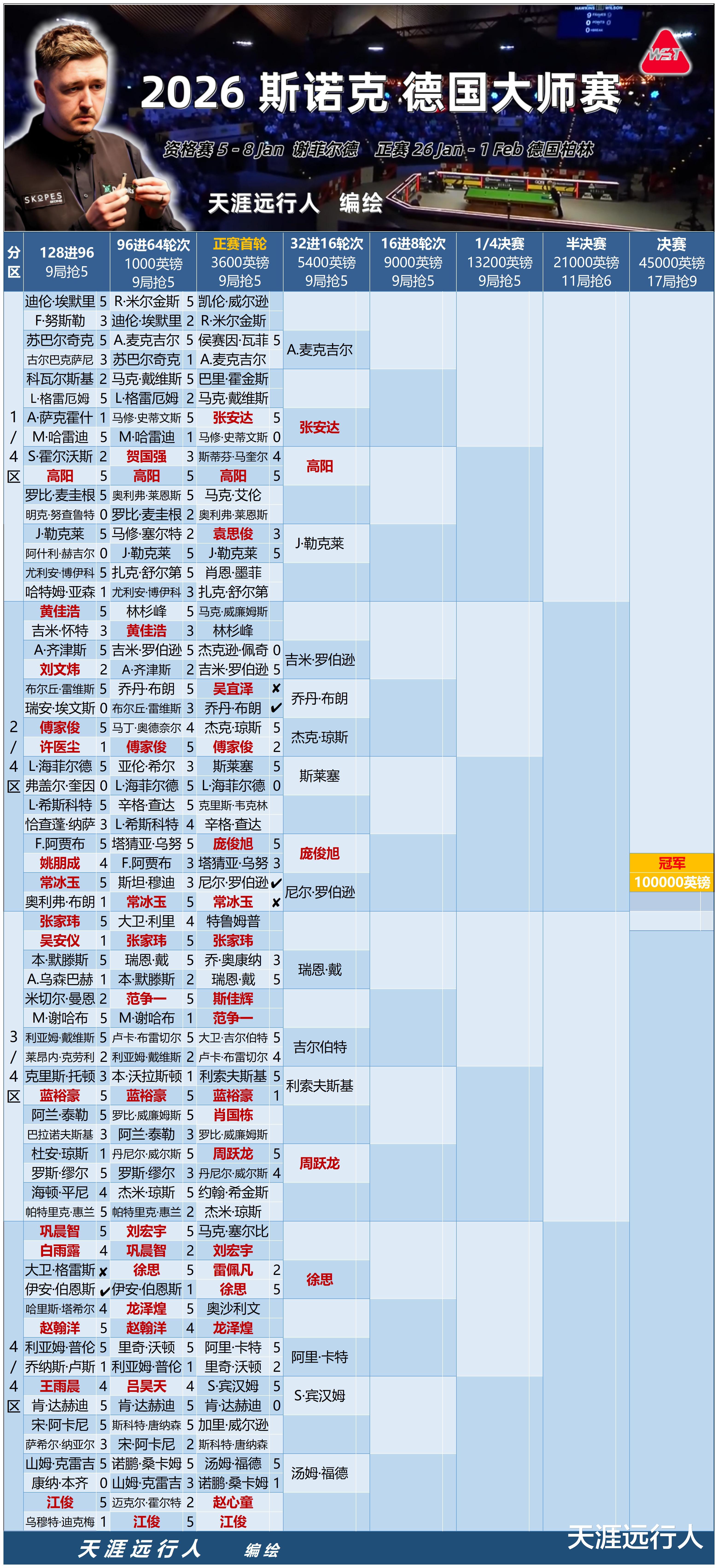 前十六种子吴宜泽退赛,延期资格赛的对手乔丹·布朗躺进32强。