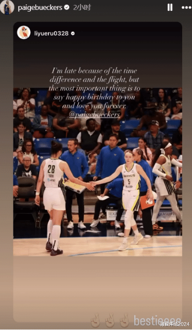 北京时间10月21日,中国女篮球员李月汝更新社媒为上个赛季效力飞翼队的队友佩奇送出祝福“我迟到是因为时差和航班的缘故,但最重要的是要祝你生日快乐,永远爱你。”