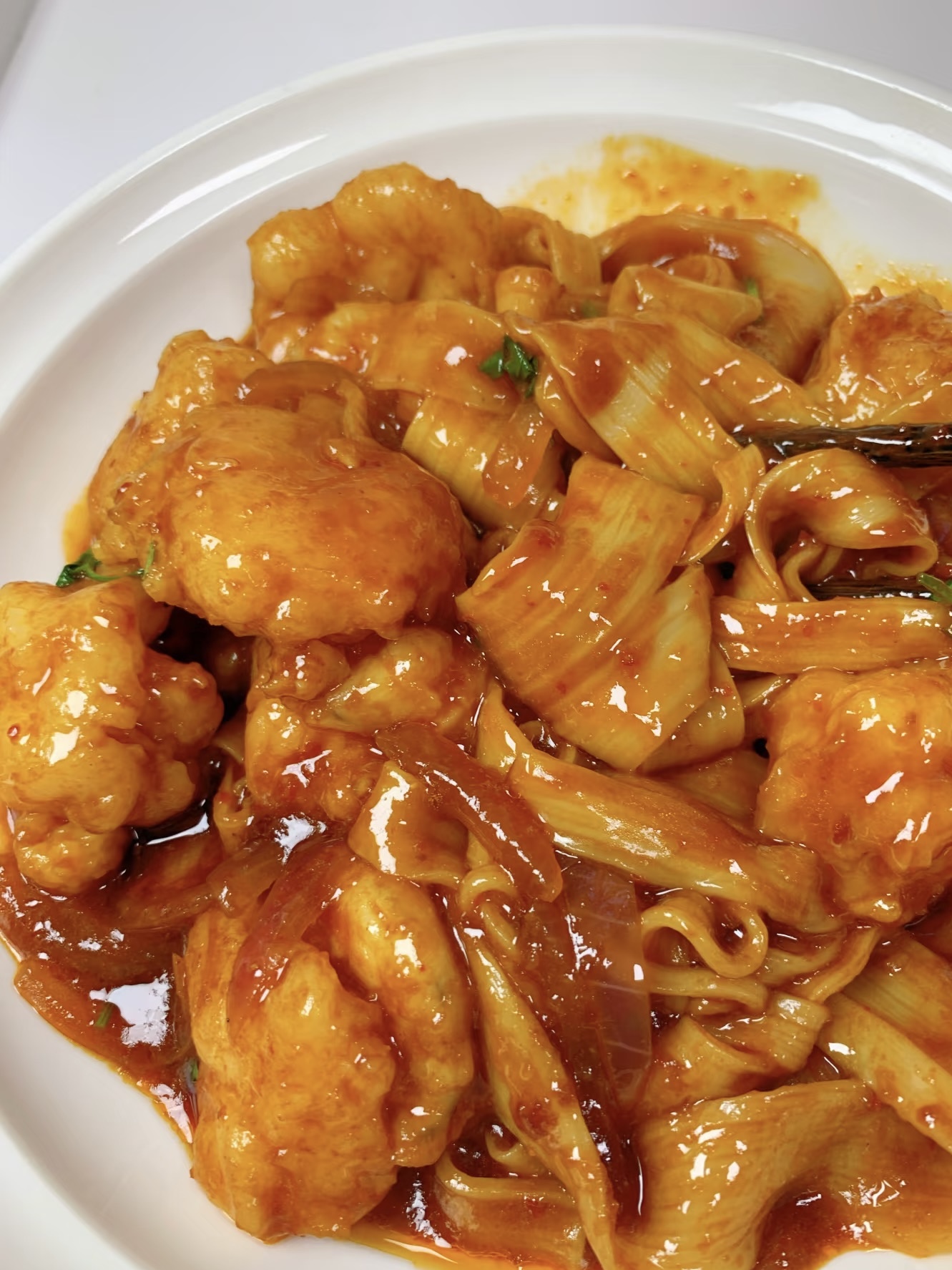 在一个小碗中,加入1勺韩式辣酱、半勺蒜蓉辣酱、半勺糖、1勺老抽和半碗水,搅拌均匀,让酱汁充分融合。韩式辣酱带来酸辣味,蒜蓉辣酱增加蒜香,糖和老抽则让酱汁更加鲜亮,这道酱汁是这道菜的灵魂所在。