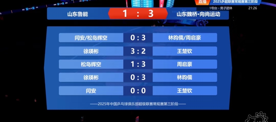 团队层面山东魏桥3-1胜鲁能;个人层面,王楚钦需调整技术与心理,徐瑛彬巩固鲁能核心、获9月WTT阿拉木图挑战赛男双资格。