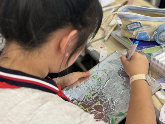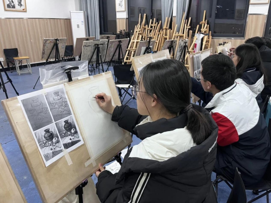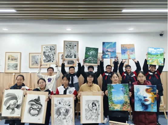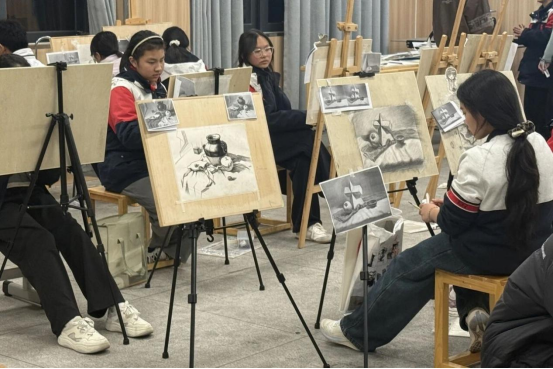 重彩油画棒选修课程作品色彩斑斓,涵盖风景、静物、创意等多元主题。同学们凭借油画棒高饱和、强覆盖的特性,以大胆的色彩搭配与灵动笔触,将情感与生活感悟倾注作品,展现出出色的色彩驾驭能力。校园美术特长生群体的作品更显专业功底,初一作品充满活力,初二作品初具风格,高中作品则兼具深度与张力,融入对生活与社会的思考。部分特长生作品还在巴布亚新几内亚教育部代表团访校时亮相,优秀作品被学校留校收藏。