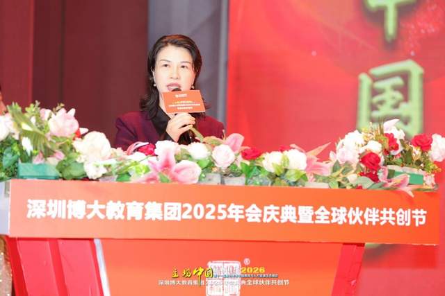 深圳博大教育集团股东委员会代表李银华首先代表集团向与会的嘉宾与伙伴们致以诚挚欢迎。“欢迎回家!回到我们梦想开始的地方,回到我们共同的精神原乡——深圳!”她动情说道,“今天,我们不仅为事业相聚,更是为赴一场心灵的团圆;我们不只是会议的参与者,更是家庭盛典的主角。”