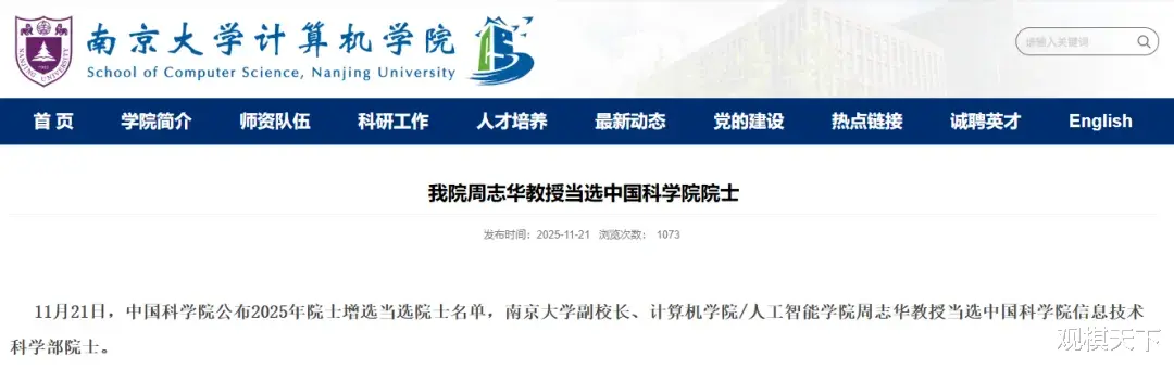 再看看副校长周志华,他于2025年11月新晋为中科院院士, 在国内人工智能界是领军者, 这种全院士的领导班子加上信息技术人才的聚集, 这个意图再清楚不过, 南大正全力发展新工科。