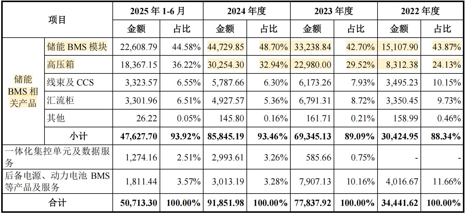 公司主要产品为储能BMS模块及相关产品,报告期内该产品广泛应用于电源侧/电网侧大型高压储能电站,以及工商业储能、户用储能等新型储能领域。