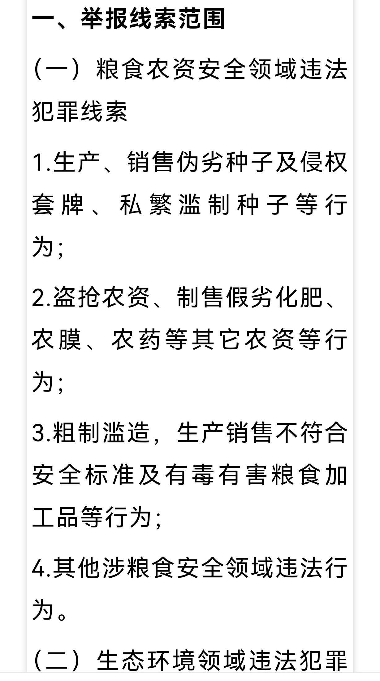 近日,锦州警方发布了征集粮食安全领域违法犯罪线索的通告,从即日起至2025年5月底,在全市范围内开展依法打击破坏粮食安全违法犯罪专项行动,举报线索范围包括粮食农资安全领域违法犯罪线索及生态环境领域违法犯罪线索,并承诺公安机关将严格执行保密和保护措施,坚决依法从严惩治打击报复举报人的违法行为。