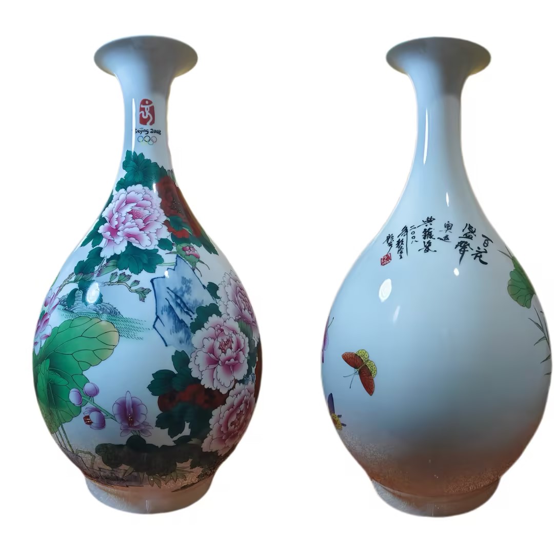 2008 年北京奥运,是 “中国向世界展示文化软实力” 的窗口 —— 这对 “蝶飞燕舞・百花盛开” 瓷瓶,正是 “奥运 IP” 与 “非遗技艺” 跨界融合的典范,背后藏着 “文化自信” 的时代密码。