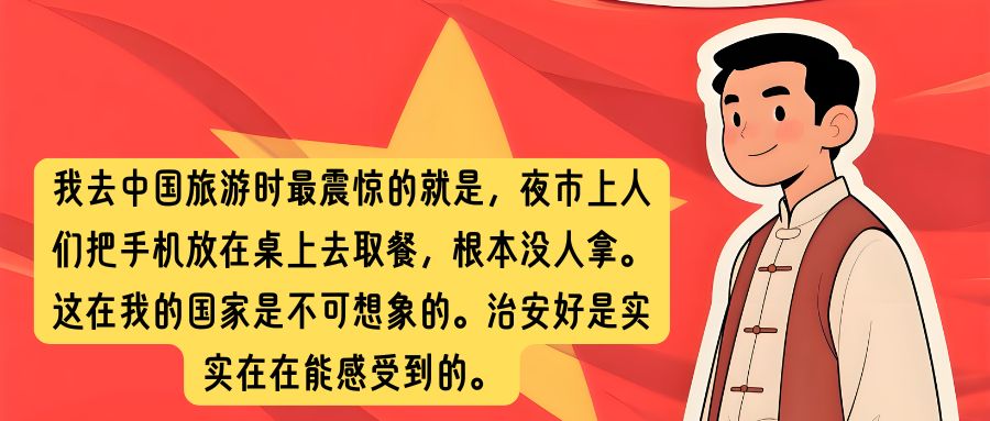 一位越南网友说道,“我去中国旅游时最震惊的就是,夜市上人们把手机放在桌上去取餐,根本没人拿。这在我的国家是不可想象的。治安好是实实在在能感受到的。”