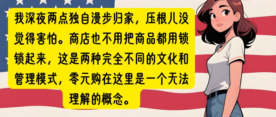 一位曾在上海与北京生活了三年的美国网友分享称:“我深夜两点独自漫步归家,压根儿没觉得害怕。商店也不用把商品都用锁锁起来,这是两种完全不同的文化和管理模式,零元购在这里是一个无法理解的概念。