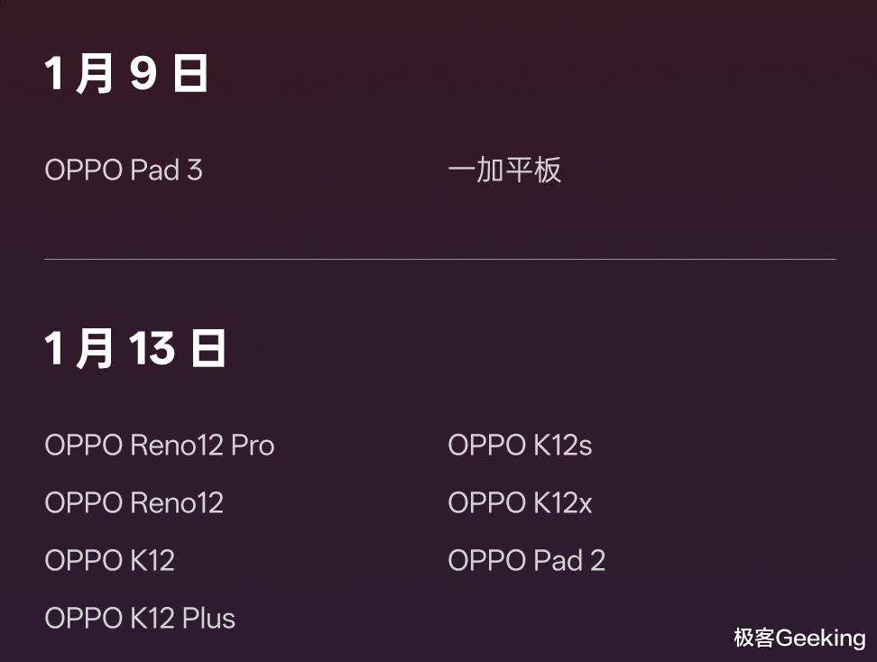K 系列:OPPO K12、K12 Plus、K12s、K12x
