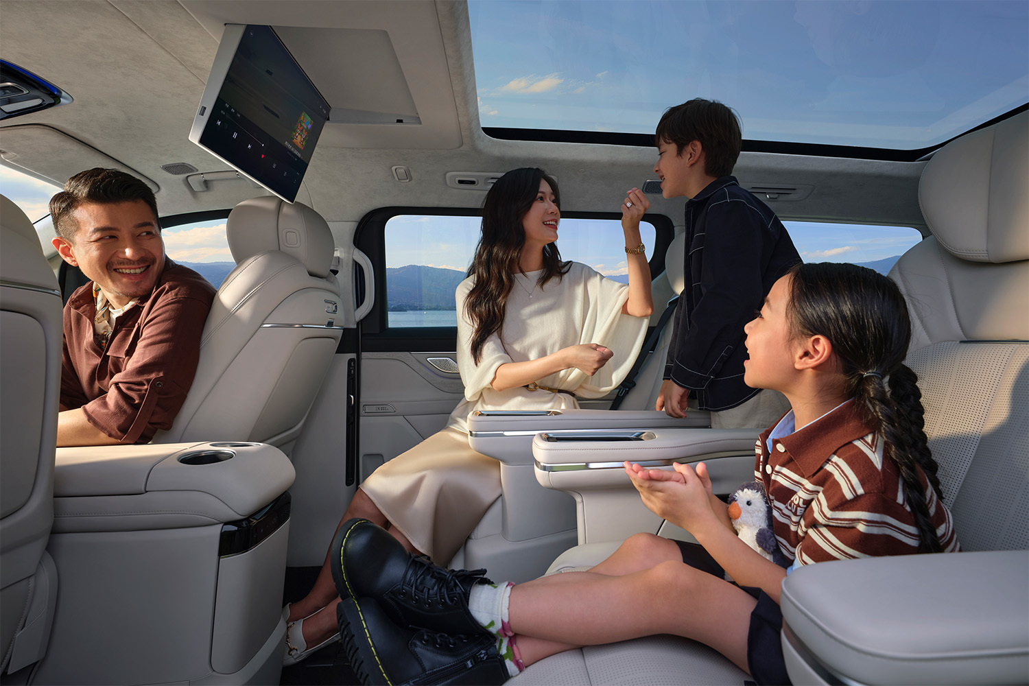 在舒适配置拉满的同时,银河V900还配备双层加胶静音玻璃、主动降噪技术和静音轮胎,拥有更好的车厢静谧性,行车时乘员休息不被打扰,也可在更安静的环境下,体验27个扬声器的Flyme Sound无界之声系统与后排17.3英寸娱乐屏带来的影音娱乐体验。另外,银河V900还配备智能新风系统和负氧离子发生器,车内全部使用环保材质,让车舱内的小环境时刻保持健康清。