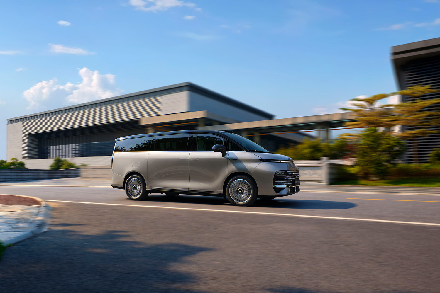 吉利银河V900的整车轮廓方正简洁,车头采用分体式照明灯和横贯式LED灯带,并且与车尾的横贯式LED尾灯组呼应;前脸部分采用横向进气格栅设计,其灵感源自西湖与泰晤士河水面波光的自然共鸣;另外,新车车顶还配有激光雷达,后视镜和尾灯也整合了驾驶辅助功能的“小蓝灯”。外观颜色提供星瀚银、月曜白、深空蓝、极光绿、曜夜黑5种车身色供选择。