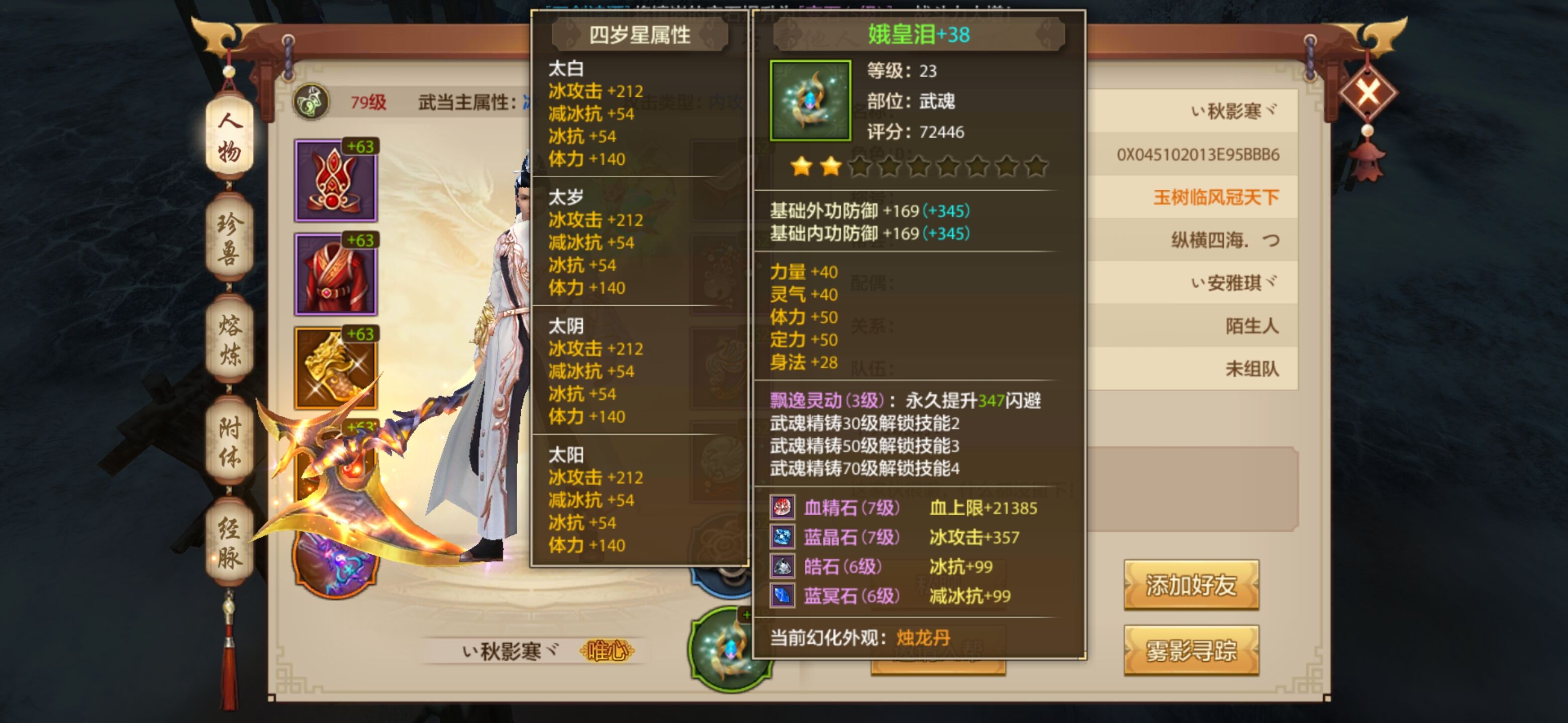 左半边血上限、闪避+双抗,右半边冰攻、会心、冰减,其余能打会心和攻击的地方全打。解释一下(武当脆皮缺生存,血上限你肯定要打,闪避异曲同工之妙。双抗不用说,挑区里攻最高的打对应抗;冰攻和冰减以及会心)