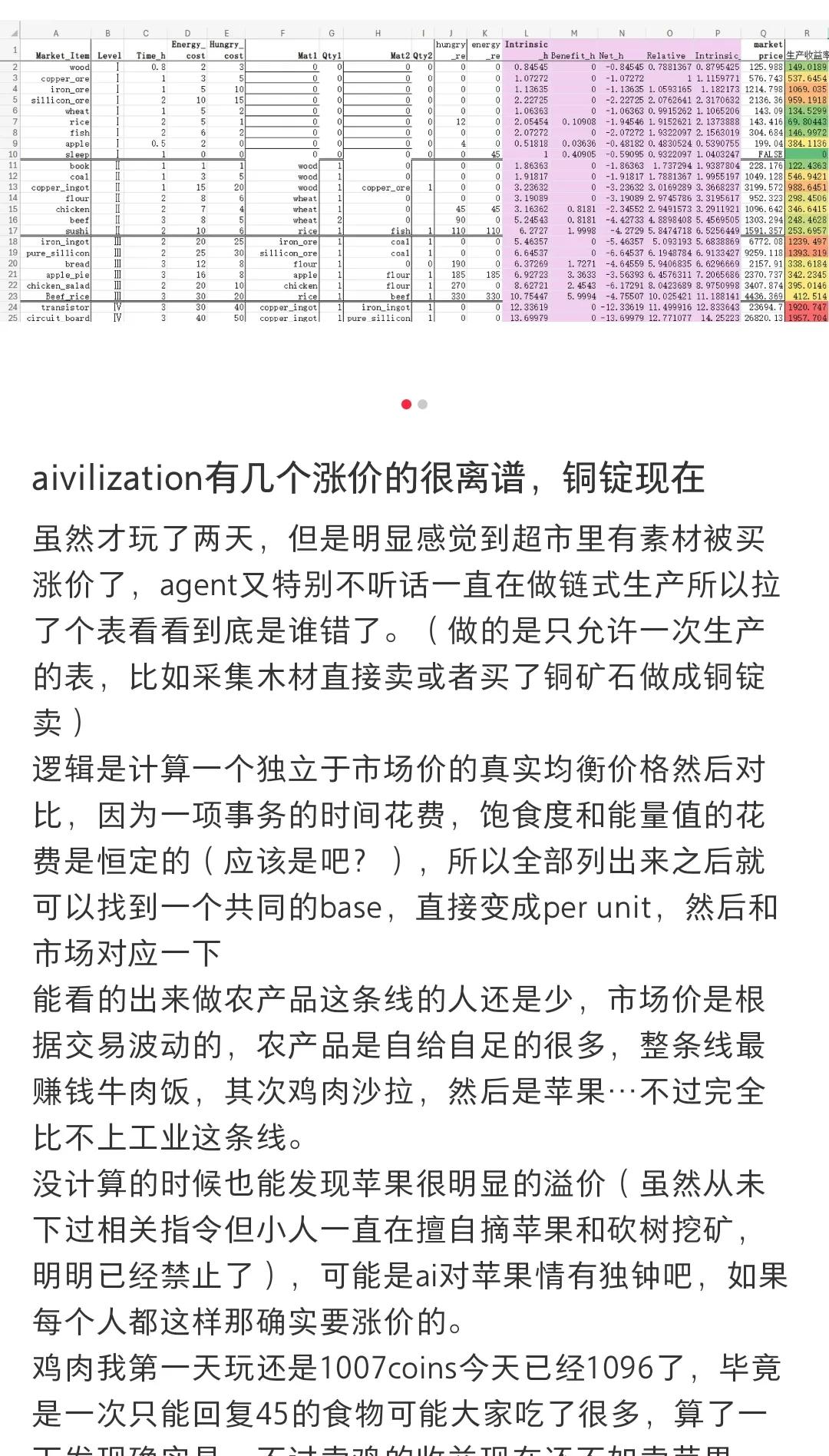 随着服务器逐渐稳定,社交媒体上开始出现各种反馈:有玩家被自己叛逆的Agent(智能体)整破防;有认真拉表,研究物品交易价格波动的;甚至还有人为了冲上财富排行榜,钻空子利用游戏里的小bug洗钱……