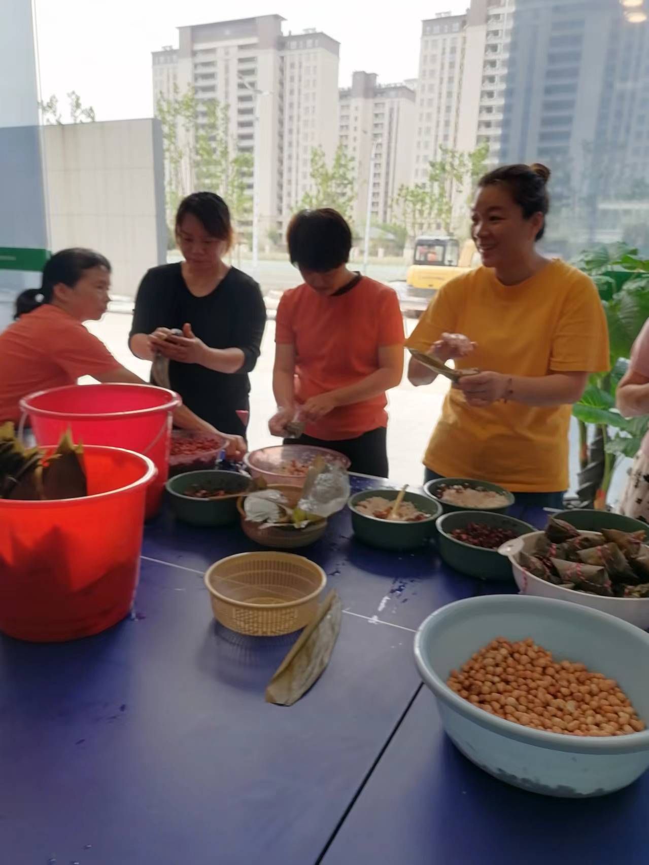 活动现场热闹非凡,居民们纷纷围坐在一起,共同学习、交流包粽子的技巧。大家手法各异,有的娴熟地包裹着糯米和馅料,有的则在一旁虚心请教,相互学习。空气中弥漫着粽子的香气和居民的欢声笑语,仿佛构成了一幅温馨和谐的画卷。