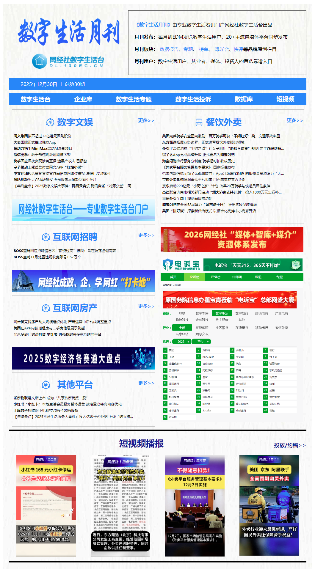 2025年12月,数字生活领域又有哪些事?以下为数字经济新媒体#网经社 旗下数字生活台为您带来本月本地生活、在线外卖、数字文娱等赛道最新动态回顾。