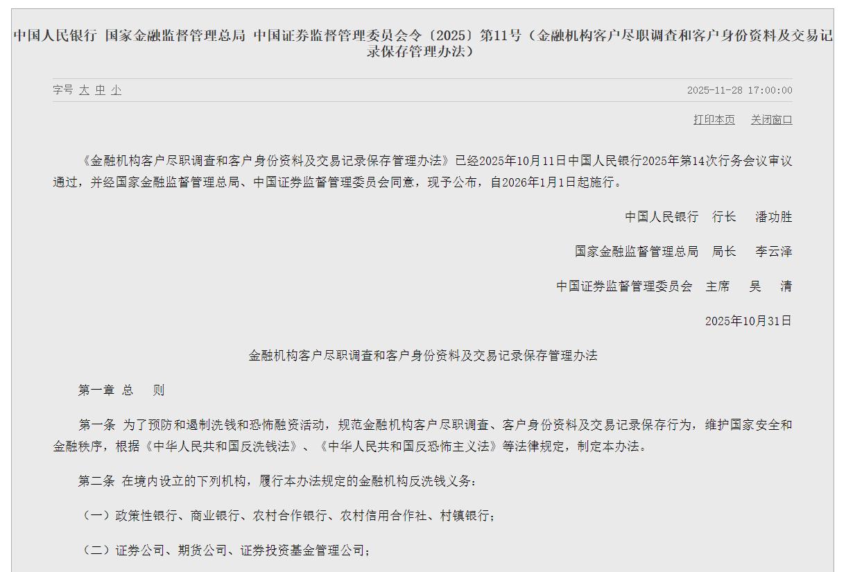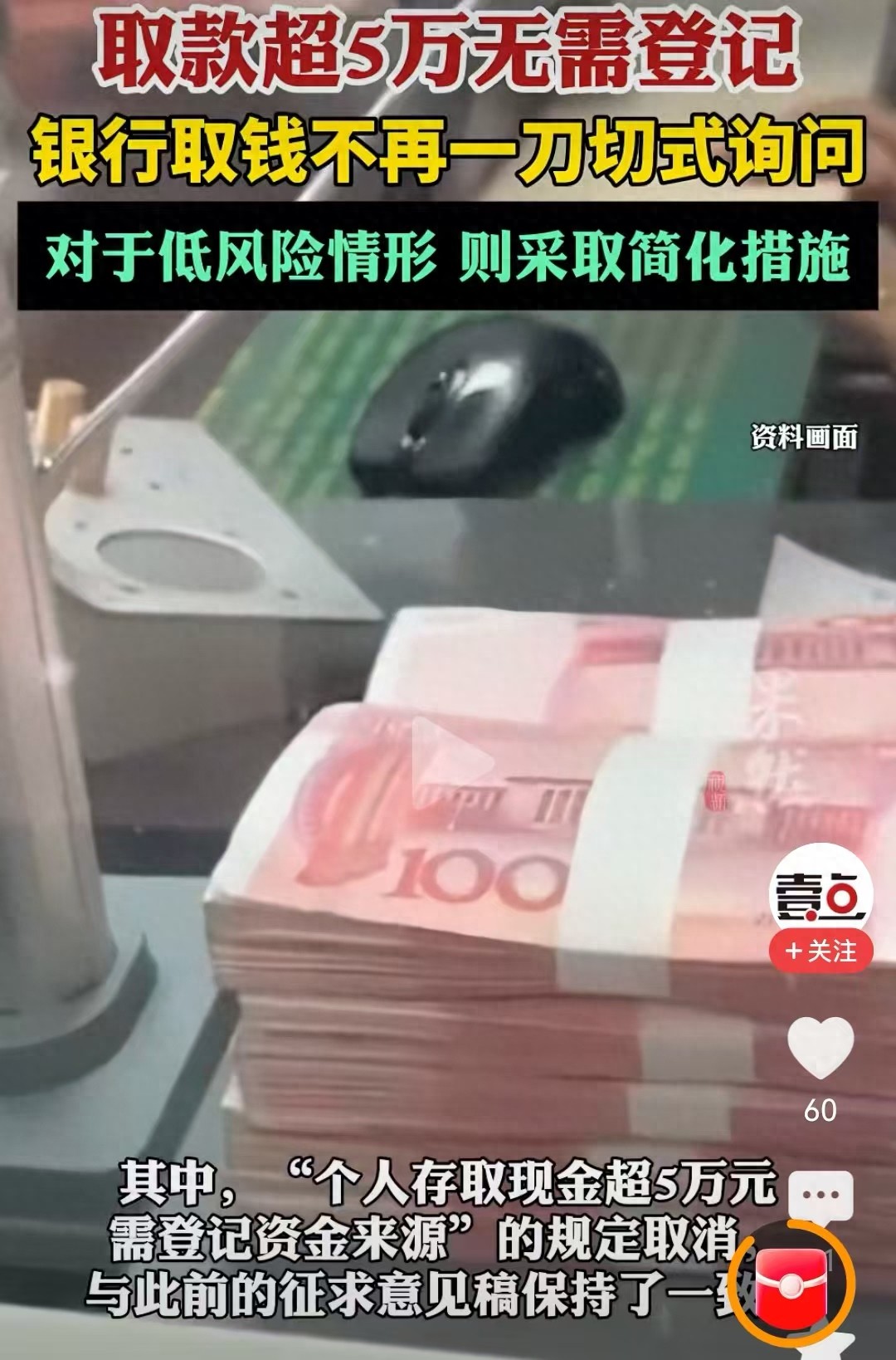 不过还是有不少民众呼吁不能“一刀切”,终于在前几日,央行、金管局以及证监会等三部委,联合发布 了《金融机构客户尽职调查和客户身份资料及交易记录保存管理办法》,其中取消“个人存取现金超5万元或等值1万美元以上需登记资金来源”的规定,将于2025年正式实施。