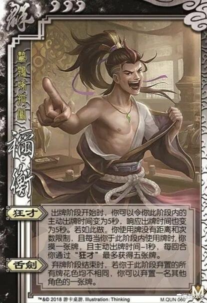 2016年,祢衡的上线打碎了彼时的三国杀游戏环境。凭借【狂才】+【舌剑】顶级的多刀、摸牌、拆迁,直接干碎了那个时代的全部武将。个人强度极高,现在依旧强力,祢衡顺利成为三国杀最强单挑王!