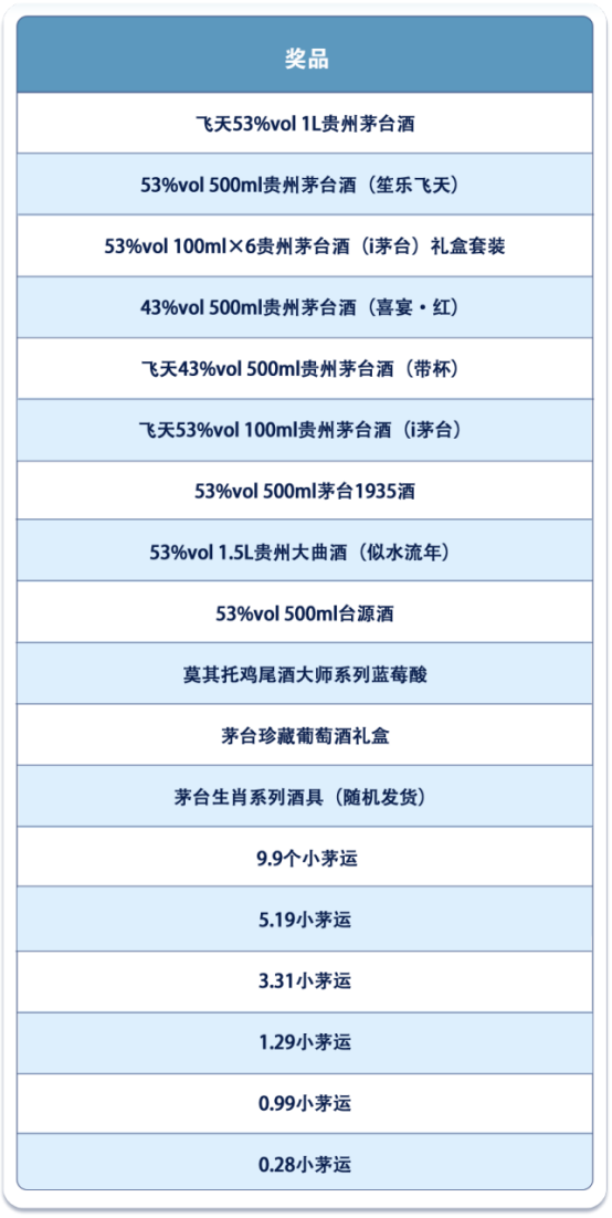 活动期间,亲们在一个自然周内,连续7天参与活动可获得1次53%vol 500ml贵州茅台酒(乙巳蛇年)的抽奖机会;连续28天参与活动还可额外获得1次53%vol 375ml×2贵州茅台酒(乙巳蛇年)的抽奖机会。