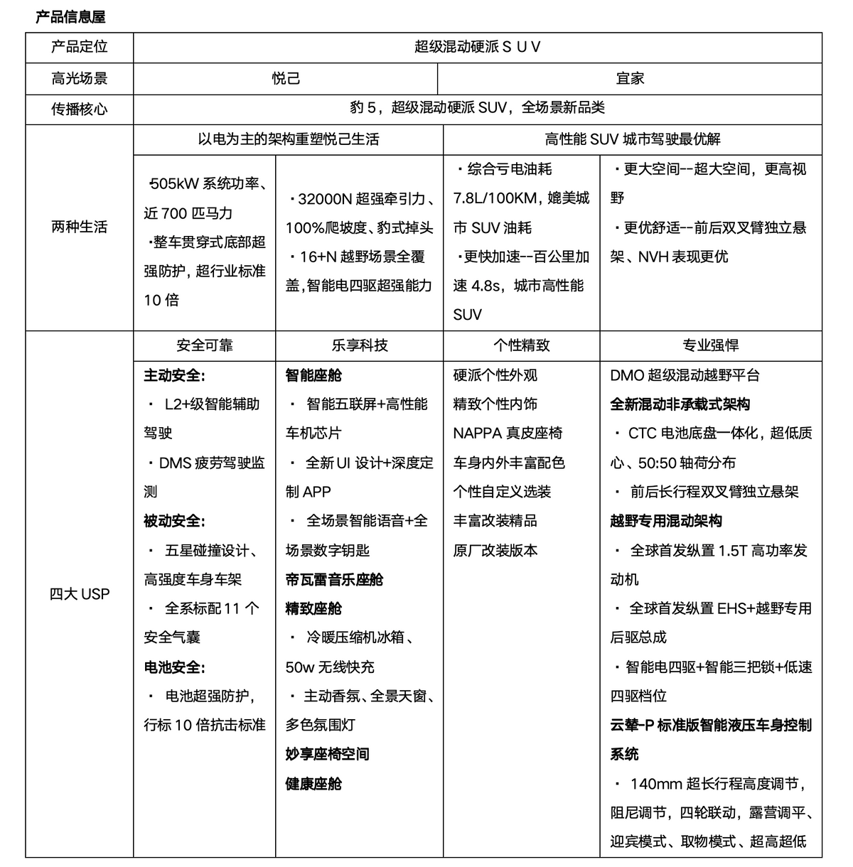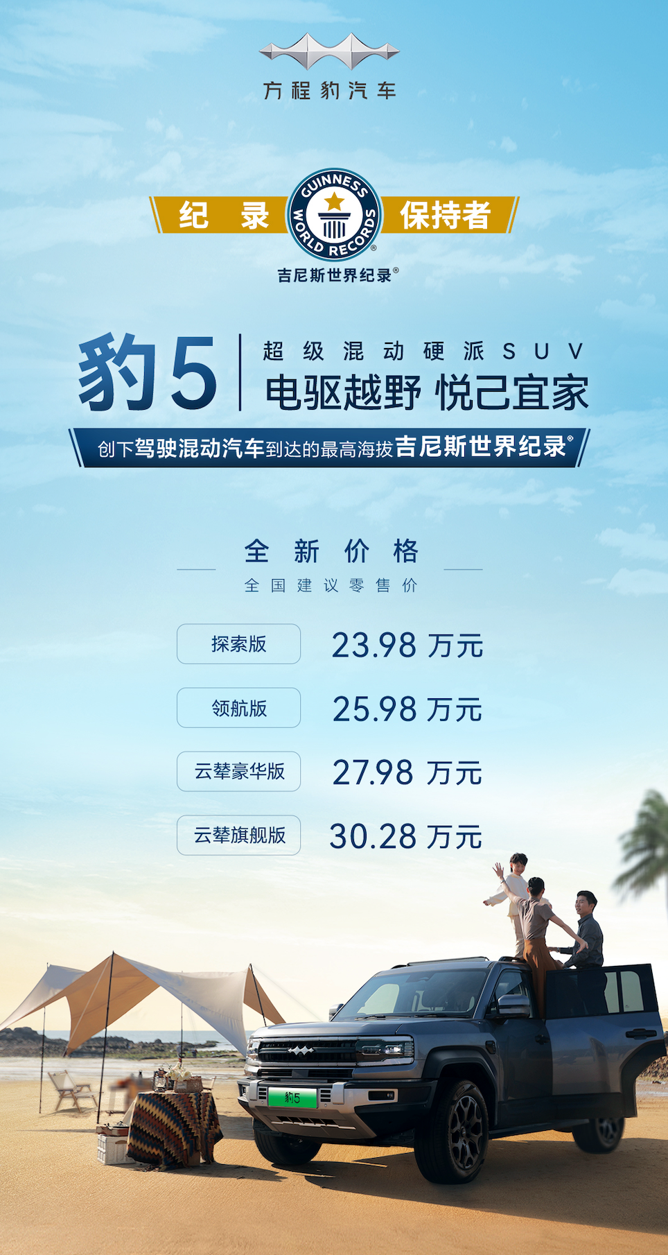 全新价格带来极强的购买诱惑力,豹5的技术平权对同档位产品绝对是一个强有力的打击!这里简单提一点豹5几个核心价值,作为超级混动硬派SUV,豹5首搭比亚迪DMO越野专用平台,综合功率 505kW,近 700 匹马力,还带三把锁,低速四驱!