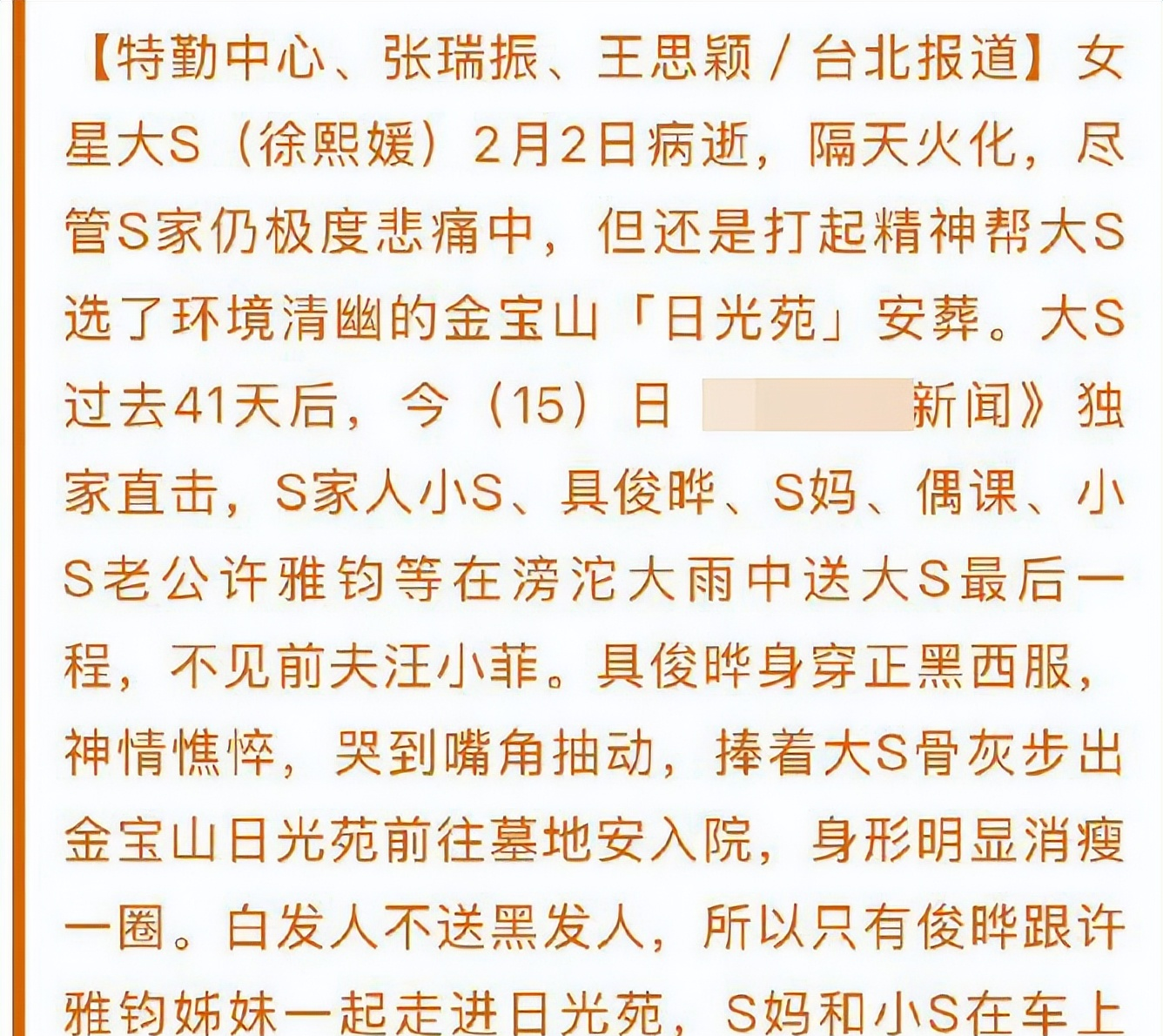 这一决定,饱含着家人对大S深深的怀念与追思。