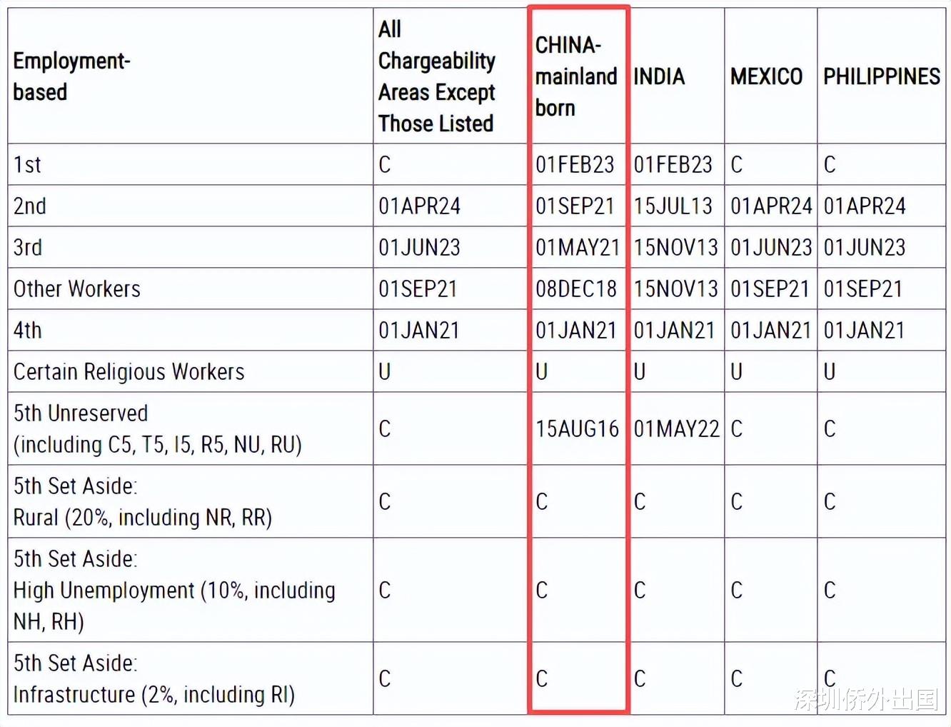 对于中国大陆地区出生的申请人来说,2月EB-1表A排期继续停留在2023年2月1日,表B停留在2023年8月1日无变化。