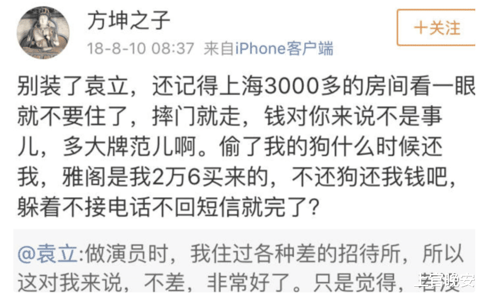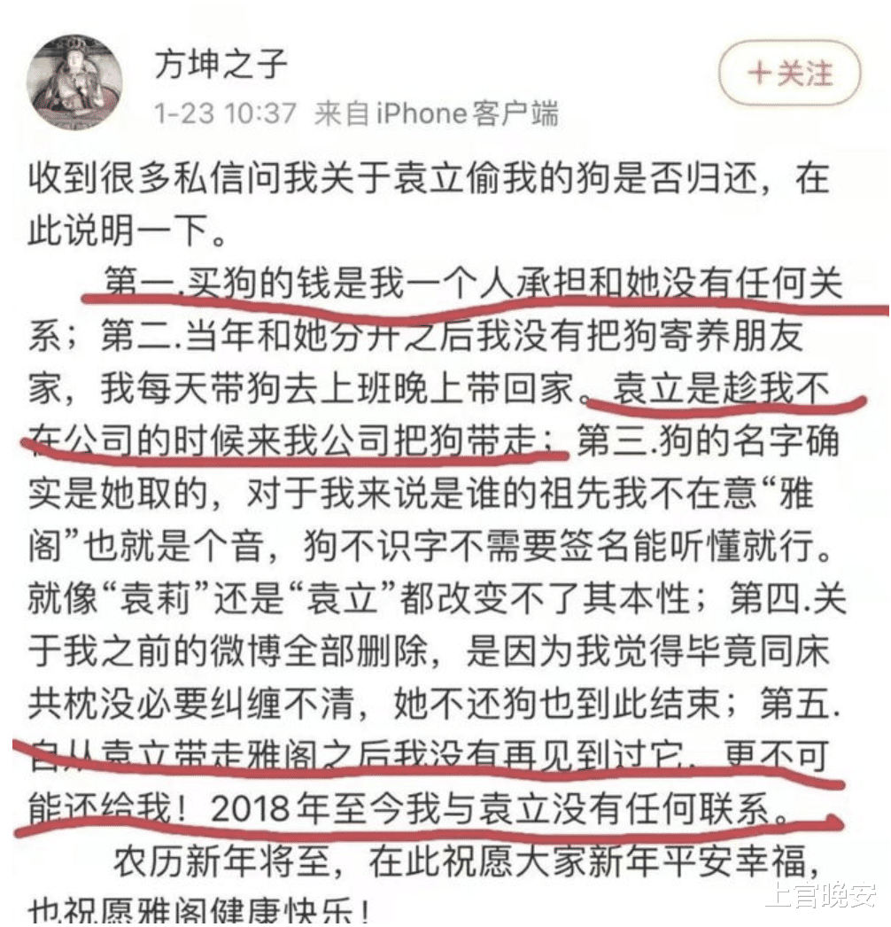 前男友为此发了声明,大意说买狗的钱都是他出的,跟袁立断联几年了,袁立没还狗以后也不会还,他再也不想和袁立有任何关系。