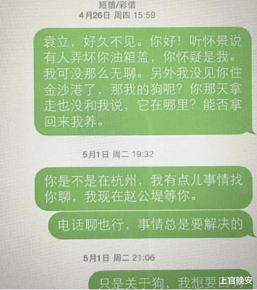 事情过去了好几个月,前男友才知道是袁立带走的狗,于是电话、短信、微信联系袁立,好说歹说让袁立把狗还回来,袁立既不还狗也不回应,后来还把他拉黑了。