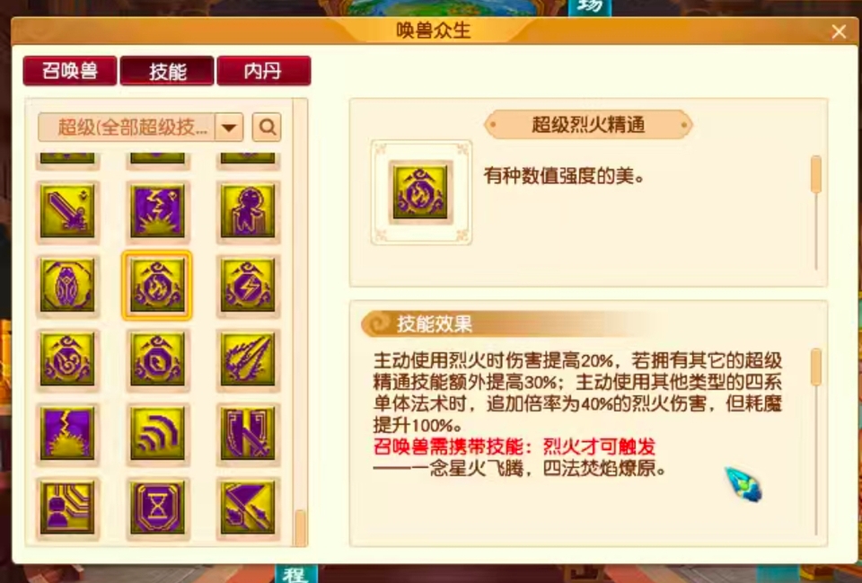 梦幻西游这次新资料片一共放出了4个新技能,但不确定这几个精通技能是不是特殊技能,目前感觉应该不是。但是有一个问题,如果想发挥最大的一个精通技能的输出,起码需要两个单法技能,就是你有高级烈火精通加上你必须有烈火额外,你要再有一个水攻,放水攻的情况下,才会输出最大。