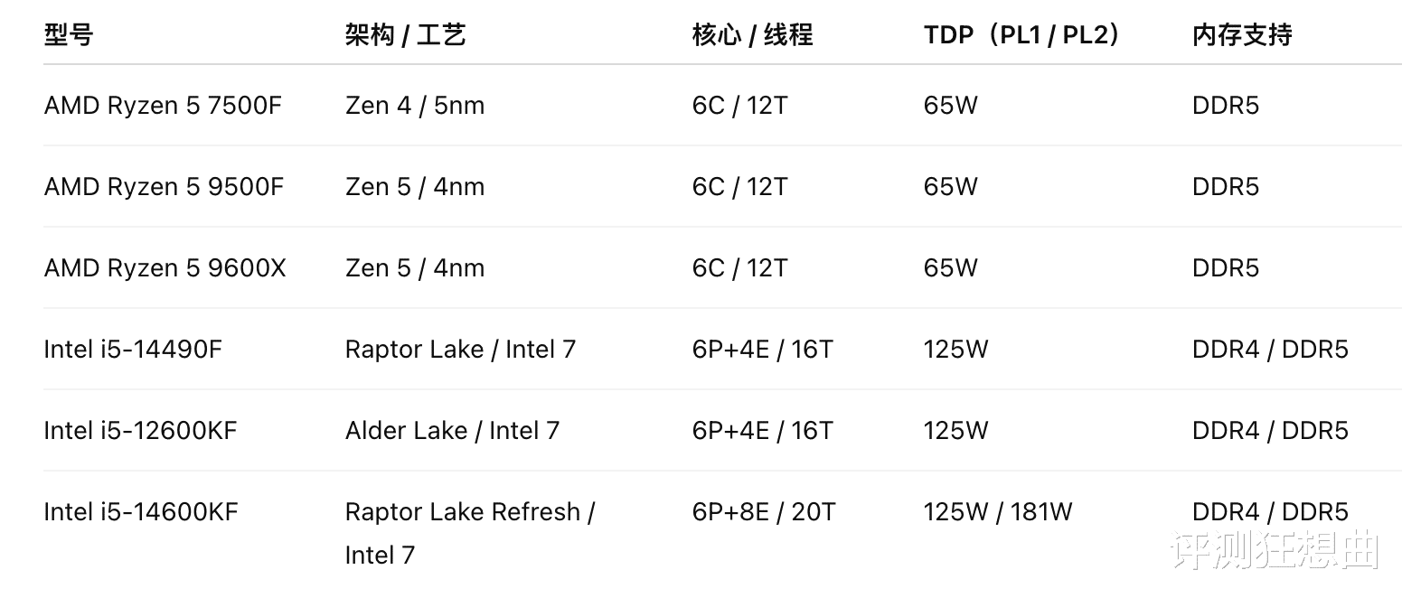 ● AMD Ryzen 5 7500F:定位与9500F接近,性能相差不大,适合看重AM5平台升级潜力的人群。