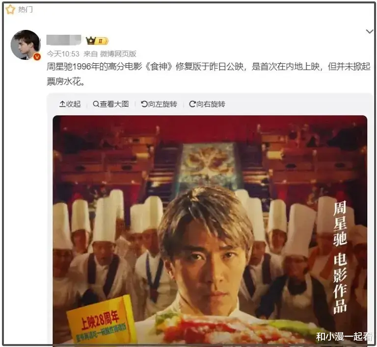 《食神》重映首日票房远逊预期,观众反响也不甚理想。不少90后、00后网友直言无法欣赏星爷的无厘头笑点,认为桥段老套、低俗,调侃方式也有不尊重女性之嫌。