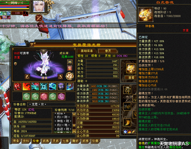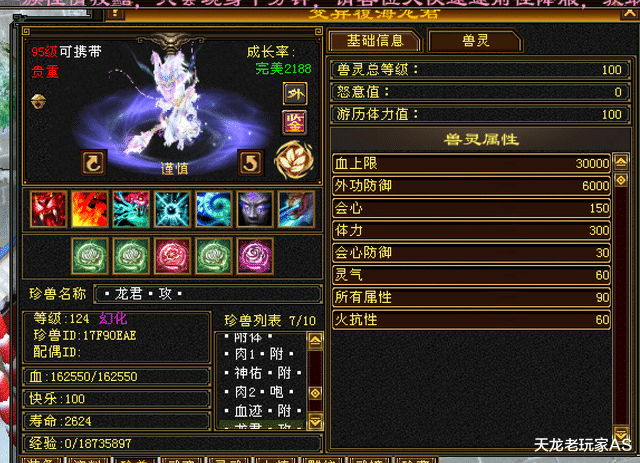 宝宝也是超强,一堆50兽灵极品宝宝就算了,还有一只100满级兽灵: