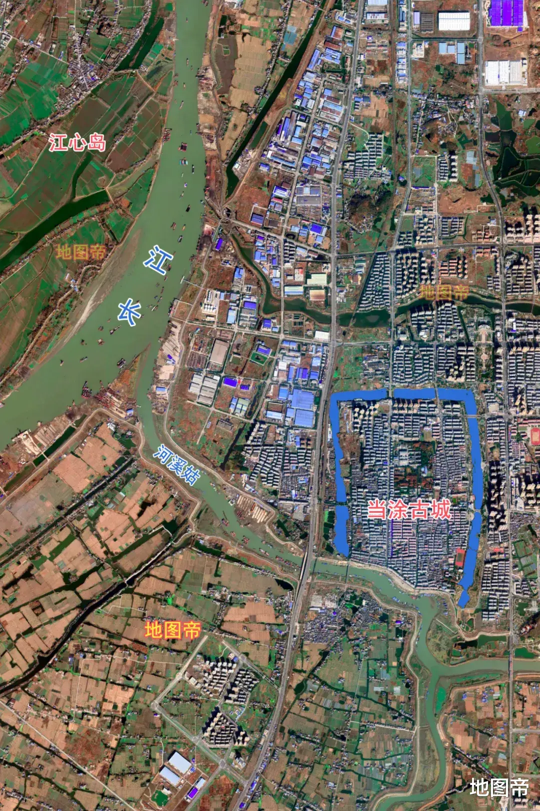 马鞍山当涂地处姑溪河北岸,姑溪河与长江交汇处,距长江东岸只有两千米。