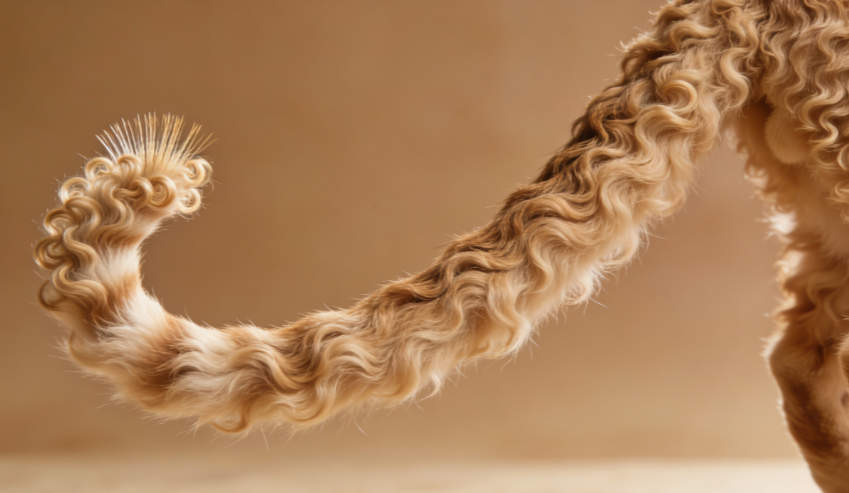 尾巴细长,长度约为身长的 2/3,尾毛与身体毛发质感一致,呈均匀波浪卷,尾尖毛发略长且卷曲更紧密,如同天然的 “小毛刷”。走动时尾巴灵活摆动以保持平衡,兴奋时会快速竖尾,卷曲毛发随之散开,极具动态美感。