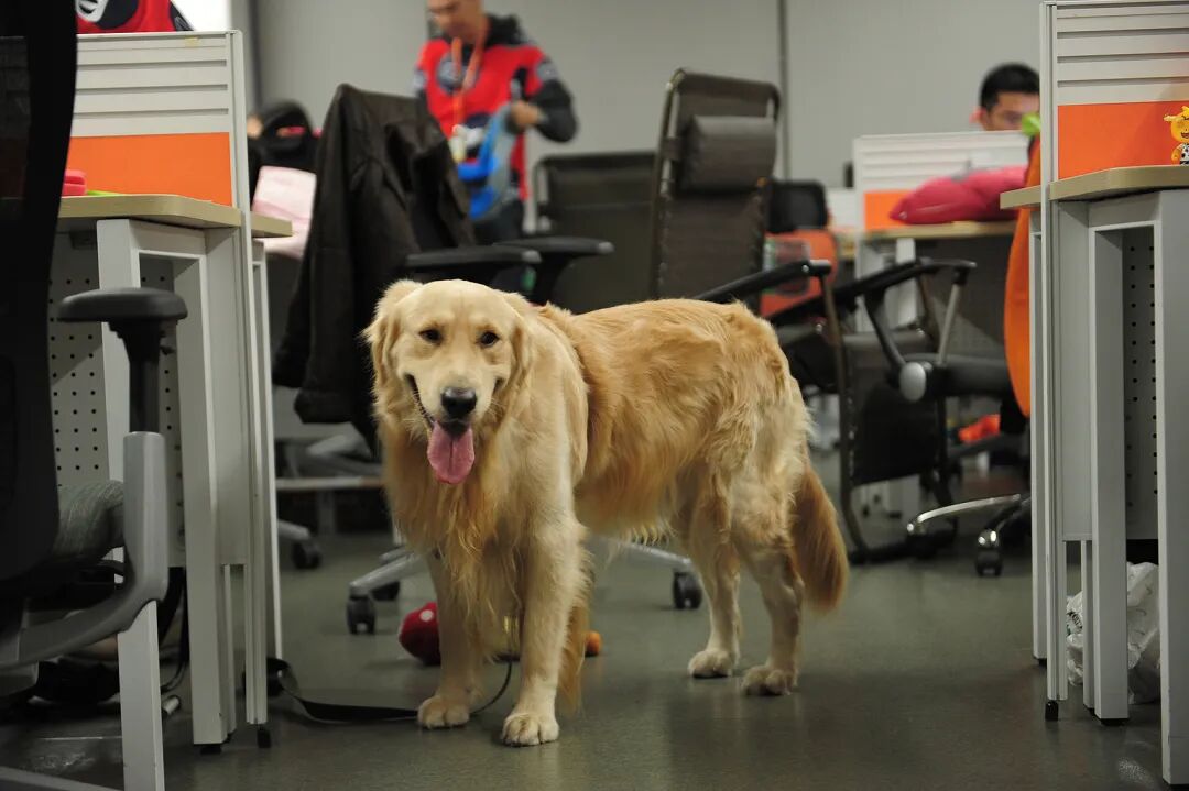 ● 2014年11月11日,杭州,一位员工带着狗狗加班。图源:视觉中国
