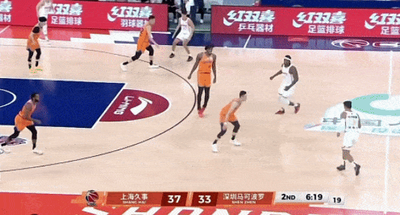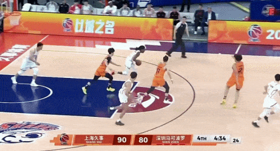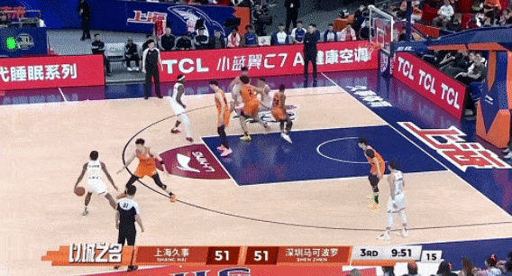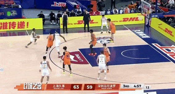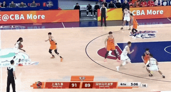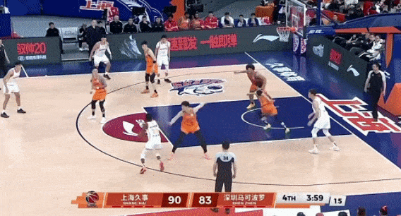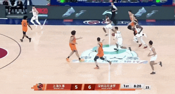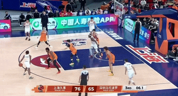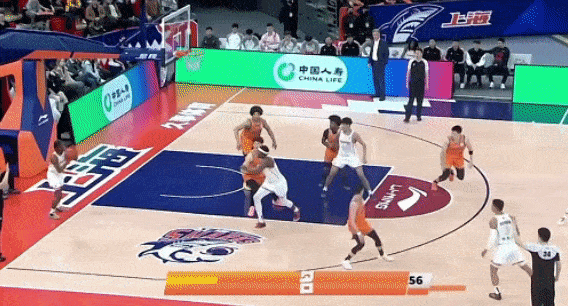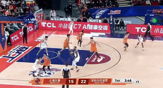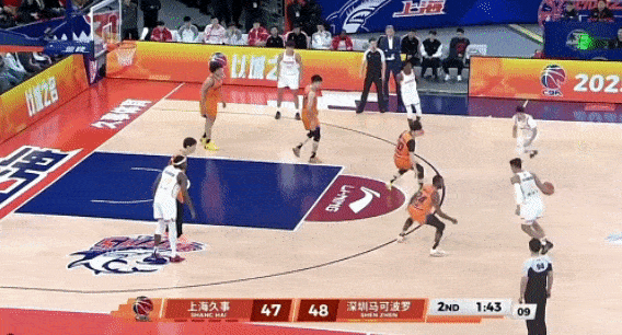 史密斯底线发球后,绕切到底角接球,这一动作立刻吸引了刘铮的补防,贺希宁出现空位,三分出手命中