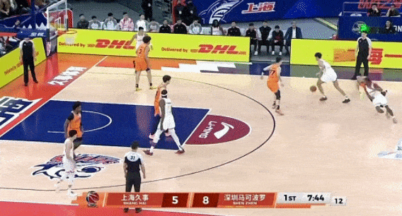 王浩然持球,贺希宁上提接球,直接干拔三分,没啥战术,这是纯粹的个人能力