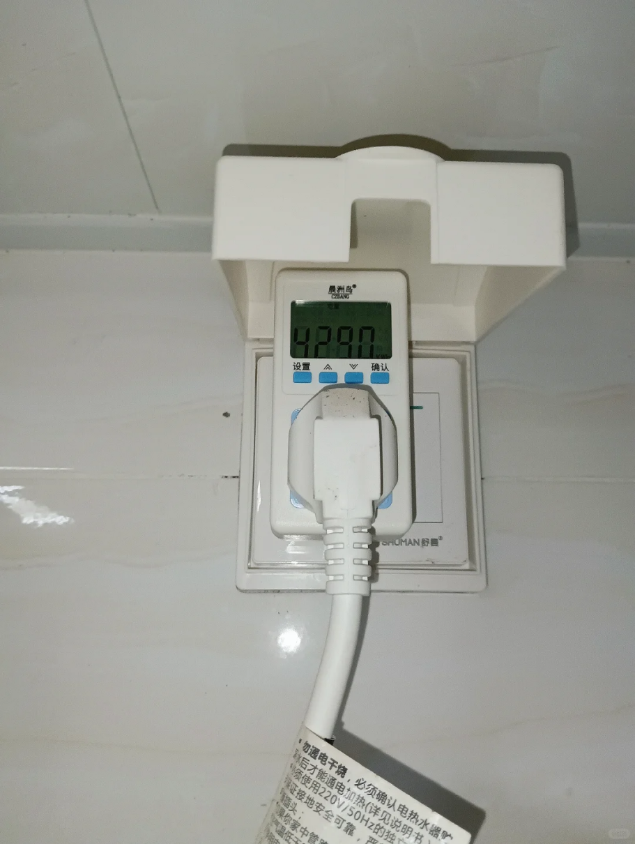 用功率表测了一下,烧到55度要50分钟,耗电2度,开着热水器洗澡,洗完,已经到2.4度了。