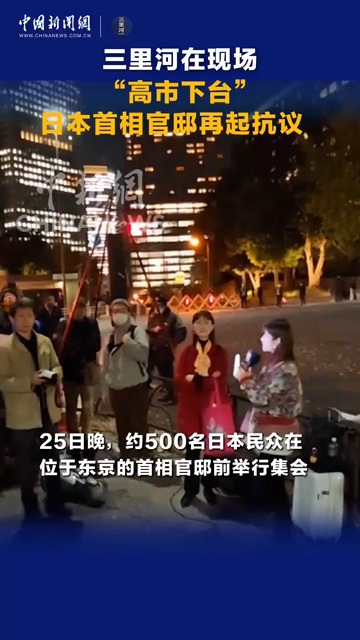 25日晚,数百名日本民众在首相官邸前聚集抗议,对首相涉台言论表达关切,要求其明确表态。