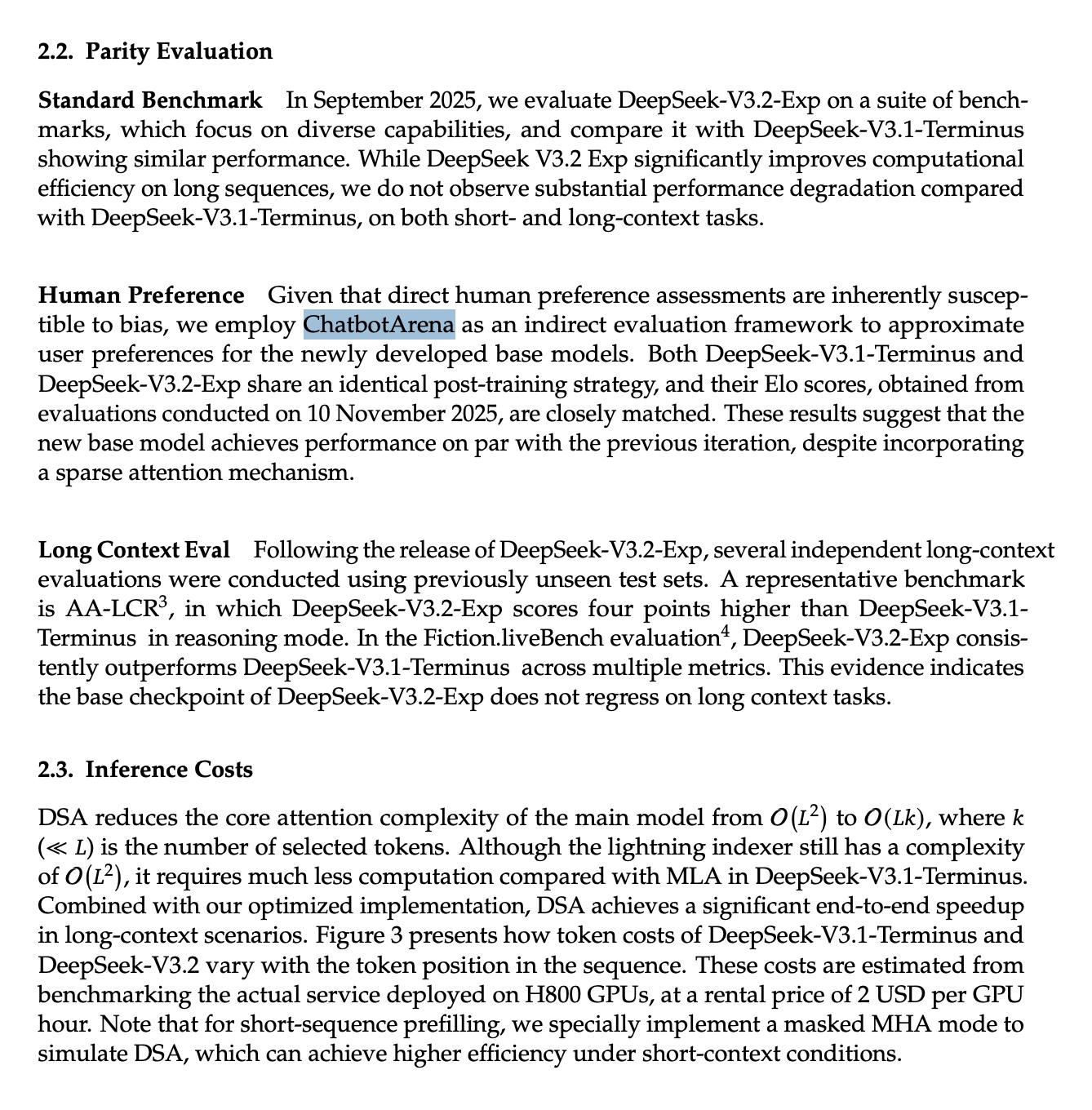 值得一提的是,有网友注意到DeepSeek-V3.2论文中有提到他们用大模型竞技场平台(ChatbotArena)进行人类偏好评估。